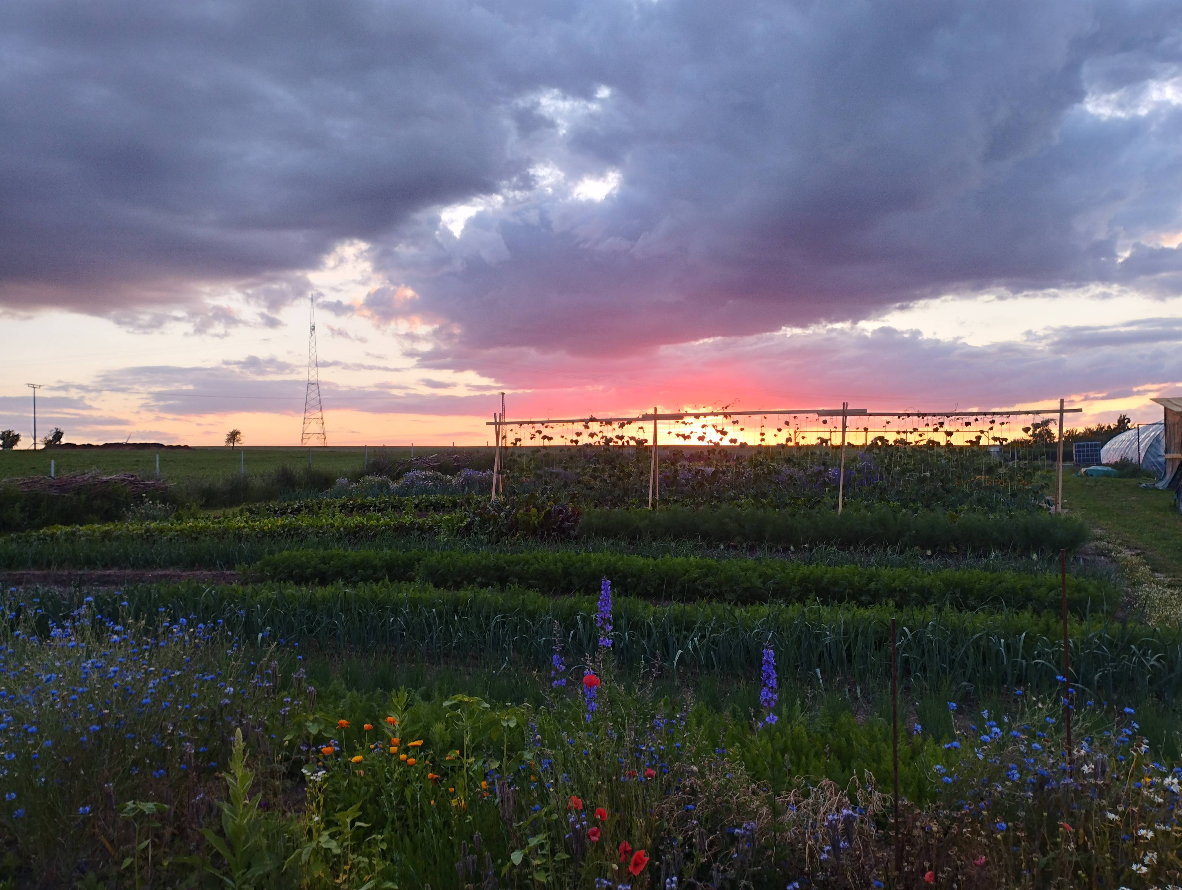 Mein Anbau orientiert sich an der Market Gardening Methode nach Jean-Martin Fortier. Auf festgelegten Beet Größen (20m x 0,75m) wird im Fruchtwechsel saisonales Gemüse angebaut. Alle Beete sind so konzipiert, dass sie händisch, ohne Einsatz großer Maschinen, bearbeitet werden können. Eine optimale Planung garantiert eine optimale Beet Belegung mit Mehrfachernten. Der Boden ist über das Jahr dauerhaft bepflanzt, sodass auch keine Flächen schutzlos dem Wetter (Wind, Regen und Sonne) ausgesetzt sind. Humusaufbau wird hier praktisch umgesetzt. Die Methode erlaubt mir auch ressourcenschonend zu wirtschaften. Auf engsten Raum kann ich vielfältige Kulturen und Sorten anbauen. Dies spart Wasser und Herstellung/Zukauf unnötiger Erden und Substrate. Ich weiß genau, wieviel ich von dem jeweiligen Beet ernten kann.